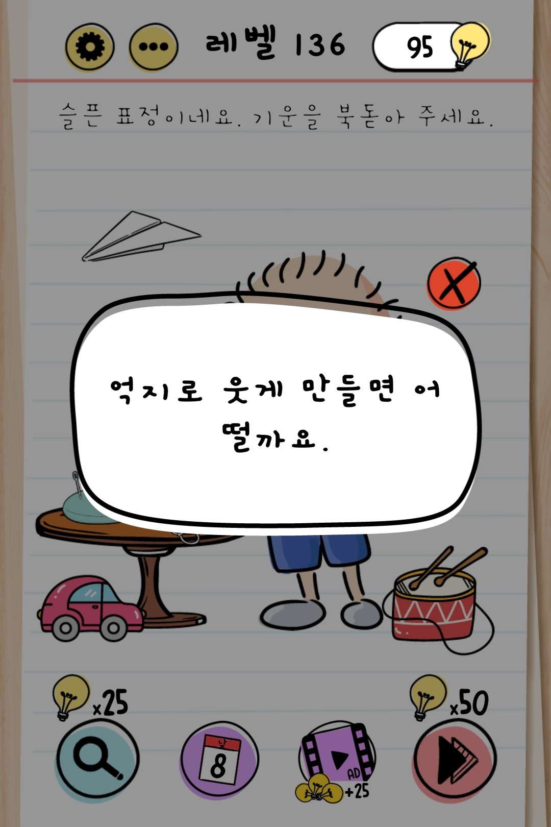 힌트 : 억지로 웃게 만들면 어떨까요.