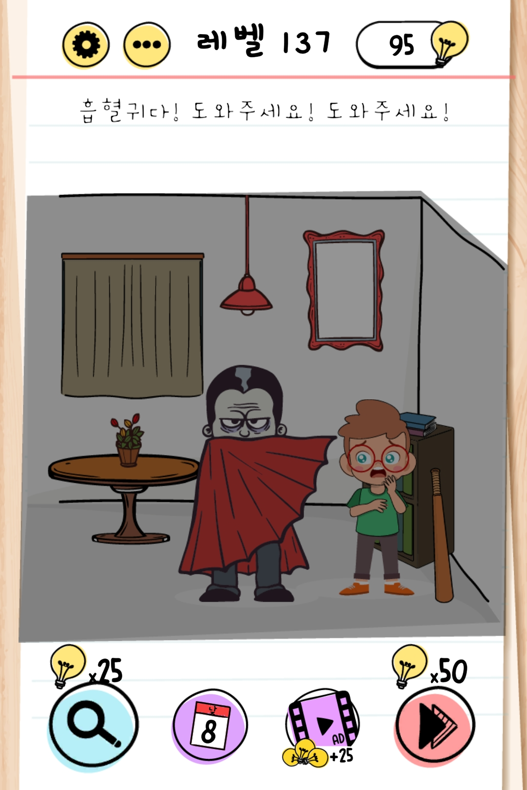 방 안이 어둡고 흡혈귀가 있어요.