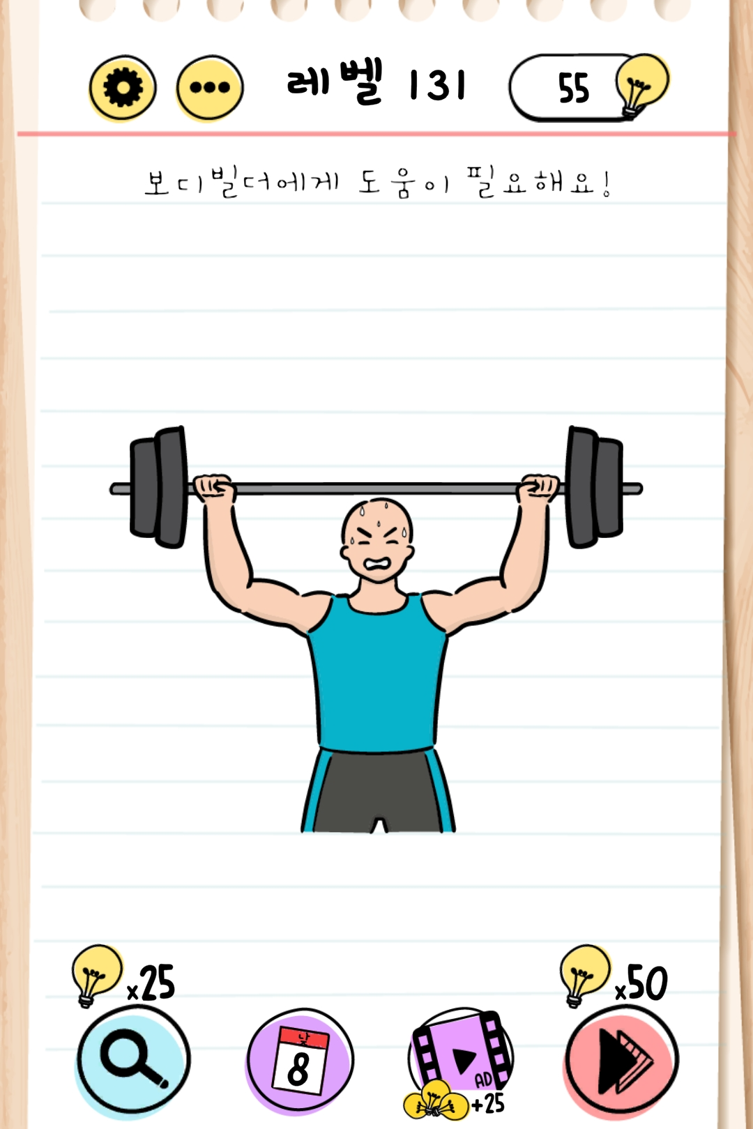 보디 빌더가 들고 있는 중량을 빼주면 가벼워서 웃을 수 있게 돼요