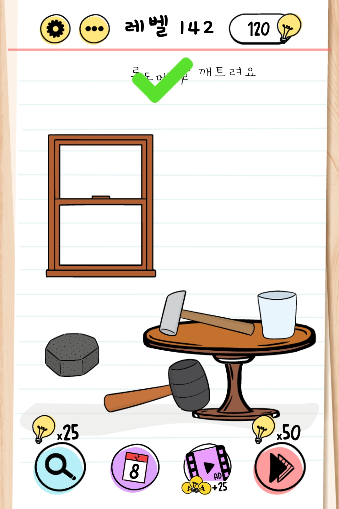 돌멩이와 망치... 창문을 깨려고 해도 안 깨져요